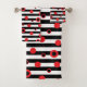 Conjunto De Toalhas Estirpes brancas e pretas e círculos vermelhos