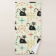 Este é um padrão de gatos atômicos pretos, bonitos, com rajadas de retro-starbursts em cor rosa, laranja e lacre sobre fundo de creme leve. É uma toalha de banho excelente para amantes de gatos