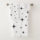 As estrelas pretas cintilantes apresentam uma design de tendência sobre uma matéria têxtil branca de toalha.