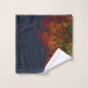 Olhando para os galhos de uma torre no outono. As folhas em queda de burgundy, vermelha, ouro, laranja, amarela e azul brilham contra o céu azul profundo.