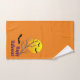 Estas toalhas de banho "Spooktacular" apresentam uma lua de cheio amarela brilhante sobre fundo laranja, com um galho de árvore e três morcegos em primeiro plano. O texto "Feliz Dia das Bruxas" pode ser personalizado. O pano de lavagem, a toalha de mão e a toalha de banho podem ser comprados como sortido ou individualmente.