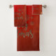 Conjunto De Toalhas Feliz Natal Faux Dourado Glitter, Vermelho