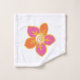 Faça do seu banheiro um lugar feliz com flores brancas brilhantes! Esse conjunto inclui um pano de lavagem com uma grande floração cor de laranja e rosa, uma toalha aqua com três flores e uma grande toalha de banho coberta com um esplendor dessas duas e mais brilhantes flores. Verifique a cortina de chá e o tapete de banho correspondentes!