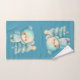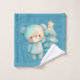 Toalha com uma ilustração adorável. Um urso aconchegante com estrelas e faíscas no pelo. Ao lado de uma árvore de Natal. Cor azul-esverdeada do Pastel. Whimsical e fofo.