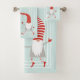 Um design para seu decoro de Natal, este conjunto de toalhas de banho tem um gnomo escandinavo esquimundo pulando ao longo da toalha de banho, toalha de mão e pano de lavagem. O fundo é um verde de menta que contrasta bem com o vermelho nos chapéus altos e pontiagudos do gnomo e nas meias riscadas. Linhas brancas finas e repetidas em cada item enquadram os designs no estilo moderno. Na Escandinávia, os gnomos (também chamados de nisse ou tomte) estão associados aos feriados de Natal e são muitas vezes vistos como uma versão escandinava de Santa Cláusula. Pensa-se que eles tragam boa sorte para o lar.