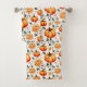 Towel set in a fall-themed pattern featuring vibrant orange pumpkins intertwined with blooming chrysanthemums in warm yellow and orange hues, creating a festive harvest-inspired design