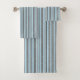 Neste conjunto de toalhas de na moda são um padrão escondido de fitas de ornamentado prateadas em um pano de fundo azul de bebê criando vibrações quentes modernas