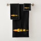 Flame Amarelo Laranja Moderno e Elegante no Conjunto de Toalhas Pretas.