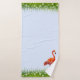 Flamingo Rosa e Prado com Flores em Toalha Azul Claro. Ideal para amantes da natureza.