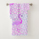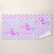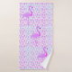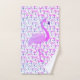 Um flamingo cor-de-rosa brilhante numa perna com uma variedade de flamingos menores com vários tons de rosa no fundo. Friso flamingo Whimsical.