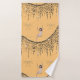 Flapper Girl em Swing Bath Toalha em um dourado e preto com diamantes falsos, linhas e pontos.