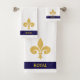 Flor de ouro e caligrafia em faixa branca e marinho azul Bath Towel Set.