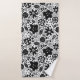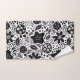 Este conjunto de toalhas preto e branco inspirado no jardim tem um padrão de flores, folhas e pontos.