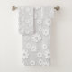 Conjunto De Toalhas Floral de Cinza Branca e Prata