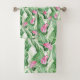 Conjunto De Toalhas Floral e Verde Rosa Tropical