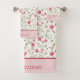 Monogramar este lindo conjunto de toalhas de banho florais rosa e verde. O conjunto inclui toalha de banho, toalha de mão e pano de limpeza. Um ótimo presente de casamento ou presente de chá de noiva ou compre um para você para alegrar seu próprio banheiro.