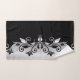 Floreados e plumas de folhas na ou sobre prata "metálica" são lindamente dramáticos contra um preto como fundo noturno neste design incrivelmente elegante, gerado por computador. Silver, como vocês devem saber, simboliza riqueza, sucesso e poder, enquanto o negro é o epítome da formalidade, elegância, atração e mistério. Não admira que estas duas sejam uma das combinações de cores de "potência". Este adorável conjunto de toalhas é uma adição dramática e elegante ao seu decoro de banheiro.