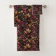 Conjunto de toalhas de banho com estampas botânicas e florais em dourado, borgonha e preto. Este conjunto inclui toalha de banho, toalha de rosto e toalha de mão. Pode ser adquirido em conjunto ou separadamente.