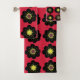 Flores negras e vermelhas, hippies, padrão floral no design tecido escandinavo.
