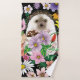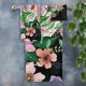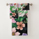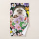 Um ouriço bonito sentado entre flores coloridas de verão num pano de fundo preto