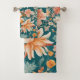 Enrole-se em suavidade luxuosa com este conjunto de toalhas de banho floral, com flores delicadas e espantosas em branco, azul, cor de laranja pastel e amarelo contra um fundo rico de terra. O impressionante design floral traz um toque refrescante de beleza inspirada na natureza, perfeito para melhorar sua decoração do banheiro. Feitas a partir de um tecido absorvente premium, estas toalhas oferecem uma pincelada, sensação suave enquanto secam eficientemente a sua pele. Aproveite a combinação perfeita de conforto, estilo e funcionalidade com este elegante conjunto de toalhas florais.