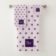 O Conjunto de Toalhas de Banho Violeta Striped é parte da coleção "Stripes e Flores: Bath, Beach, Yoga, Viagem". A coleção inclui tudo relacionado ao seu banheiro, natação na piscina ou na praia, relaxamento lá em meio a jornalismo, yoga, cartas de jogar ou frisbee. E, é claro, viajando para a praia com sua mochila favorita, que combina com uma bolsa de higiene, e capas de eletrônicos. Há também cartões que celebram reuniões e dão a você a oportunidade de convidar seu novo conhecido para se conectar virtualmente. O design tocável apresenta faixas roxas com linhas alternadas de flores roxas. Suas iniciais no roteiro de tendências são impressas em cima e em baixo do pano da face, toalha de mão e toalha de banho. Adicione suas iniciais para torná-lo seu. Para obter informações sobre design personalizado ou assistência com personalização, entre em contato conosco em info@KBMD3signs.com.