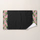 Flores brancas e rosa elegantes no conjunto preto de toalhas de Banho.