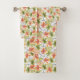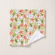 Toalha de temas tropicais com pêssego e flores de aquarela verde e arte de linhagem combinadas para adicionar um salto de paraíso ao seu banheiro.