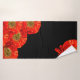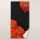 A papoila vermelha moderna floresce em toalhas pretas do banheiro.