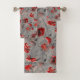 Conjunto De Toalhas Flores Vermelhas em Cinzas Escuras, Papagaios Verm