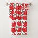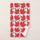 Conjunto De Toalhas De Banho Floral De Flores Vermelhas. Abstrato vermelho flores verdes folhas padrão floral.