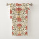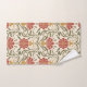 Toalhas florais elegantes com um design simétrico com flores vermelhas, folhas verdes e sotaques amarelos. Exibidas penduradas e dobradas, transmitindo um estilo vintage.