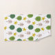 Este conjunto de toalhas tem uma design escandinava repetindo uma floresta em marrom e tons de estrelas verdes e amarelas.