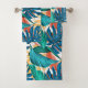 Conjunto De Toalhas Folhagem Tropical Exótica Deixa Azul Teal Siena