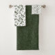 Estas toalhas de banho apresentam um padrão vibrante de folhas verdes brancas e arrojadas, acrescentando um toque refrescante e na moda à decoração do seu banheiro.