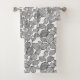 As folhas pretas desenhadas à mão estão dispersas em fundo branco. O conjunto de toalhas de Fallen Leaves é um sotaque adorável para o seu banheiro. Procure mais decoração doméstica, presentes e acessórios na coleção Fallen Leaves