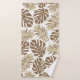 Folhas tropicais modernas, castanhas e verdes, com borda dourada, Bath Towel Set. Uma bela design tropical que inclui um padrão de monstera e folhas de palma. A toalha do banho é de cor castanha, a toalha da mão de verde e o pano de lavagem apresenta o seu monograma e uma folha tropical.