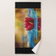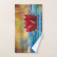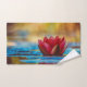 Toalha com fotografia de uma lagoa com uma linda flor vermelha de lótus a vaguear por cima.