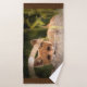 Toalha com uma fotografia de querido com uma pequena raposa laranja a espreitar por detrás de uma saída na natureza.