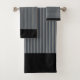 As tiras de cinza de na moda adicionam talento às toalhas de banho. Estilo: Conjunto de Toalhas Transforme seu banheiro em seu próprio oásis pessoal com uma toalha personalizada perfeita para secá-lo com estilo. Dimensões: inclui uma toalha de banho de 30" x 60", uma toalha de mão de 16" x 28" e um pano de lavagem de 13" x 13": a frente é uma mistura de poliéster, a parte traseira é 100% de algodão A impressão sublimação permite a impressão vibrante concebida para a última máquina lavável, a roupa baixa