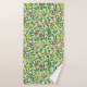Toalha colocada num padrão de limões, romãs e pêssegos, de William Morris Art Nouveau, com flores, em ramos de folhas - fruta em laranja amarelo e coral, com folhas verdes, contra um fundo de padrão, amarelo e branco