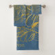 Conjunto De Toalhas Fundo Azul Folha Dourado Clássico