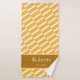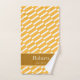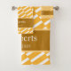 Adicione um toque de design único funky à decoração do banheiro doméstico com este conjunto de toalhas de banho personalizado. Este conjunto de toalhas moderno tem um padrão de fundo de listras amarelas e brancas e uma área de ouro para o seu sobrenome familiar e a data em que a sua família foi estabelecida (ou texto da sua escolha). Este conjunto de toalhas faz um presente personalizado de excelente para um lar, chá de panela, aniversário ou casamento, e é excelente para todos os casais e famílias.
