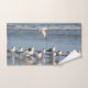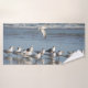 As gaivotas e suas reflexões na praia no dia ensolarado. Vista oceânica atlântica de Daytona Beach, Flórida.