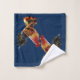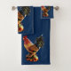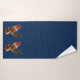 Montagem de toalha do banheiro. Mostrado com fundo azul escuro opcional ou selecionado branco.