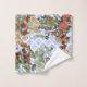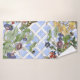Um relé de jardim branco cheio de flores, vinhas e polinizadores contra fundo azul-céu.