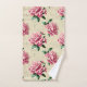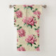 Este item apresenta um design chique com jardinas cor-de-rosa, folhas verdes e um fundo macio e brando.
