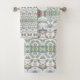 Toalha de designer de aquarela, enrolada e verde com rosa. O fundo branco pode ser alterado para qualquer cor.