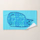 Toalha montada num design de gato retrô-século-Médio, num padrão espiral geométrico - azul-turquesa, aqua e cobalto, delineado em marinho profundo, num fundo aqua