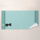 Gato preto e monograma no conjunto de toalhas azul claro. Imagem de gato apenas em um canto. Design para solteiros e casais elegantes!
